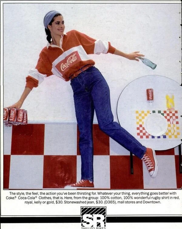 Dustin’s fashion throughout season 2, but primarily season 3 showcases the introduction and subsequent boom of the commercial graphic t-shirt. His wardrobe features a wide variety of prints, from; Camp Know-Where to The Science Museum of Minnesota. Graphic t-shirts rose to popularity in the late 1970s, and as you with any major trend, brands were ready to capitalise on it, with brands like Nike, to Calvin Klein and even Coca Cola taking a slice of the profitable pie.